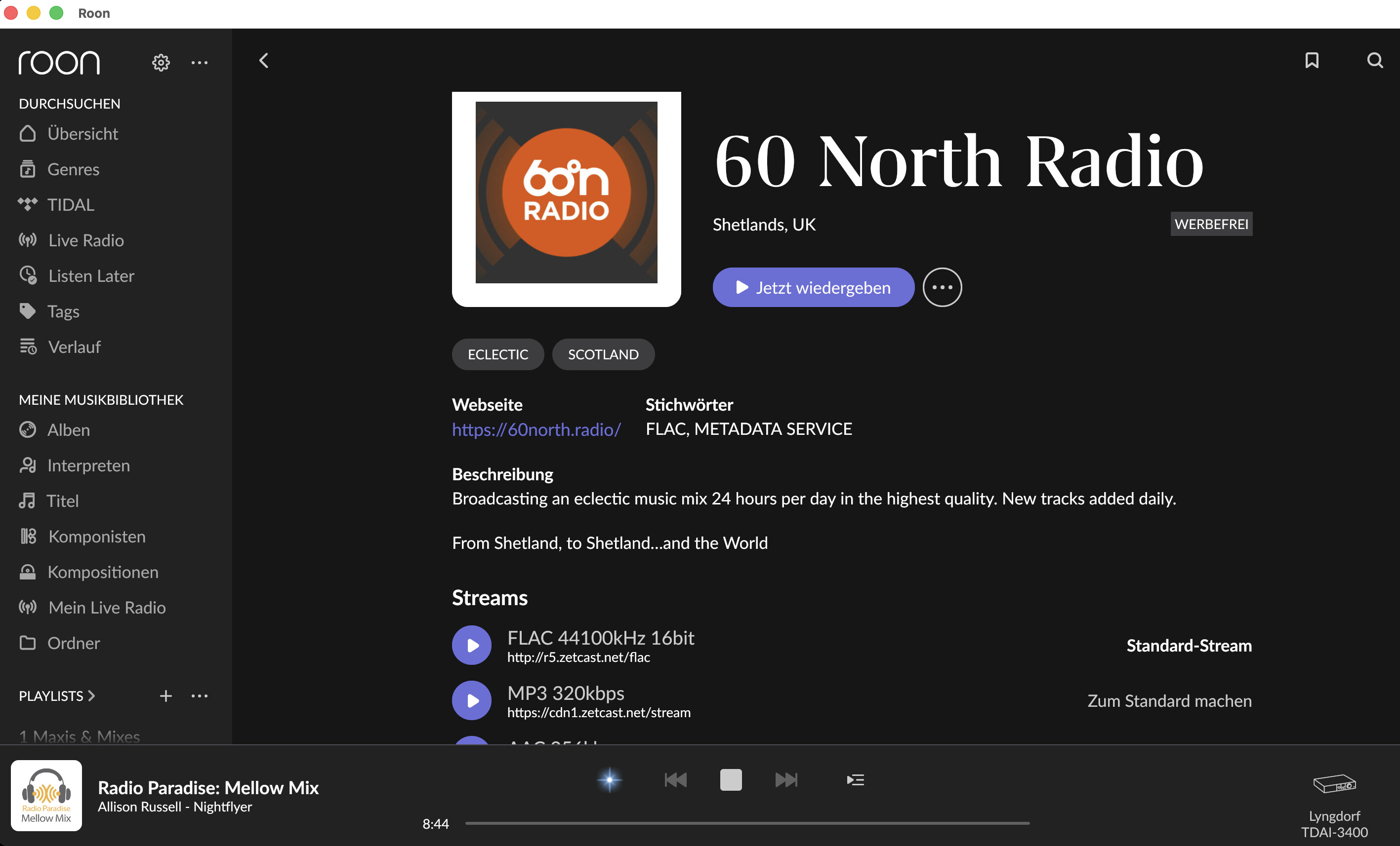 Juste une question , j’ecoute beaucoup une radio internet (Radio paradise ) en streaming car de bonne qualité.