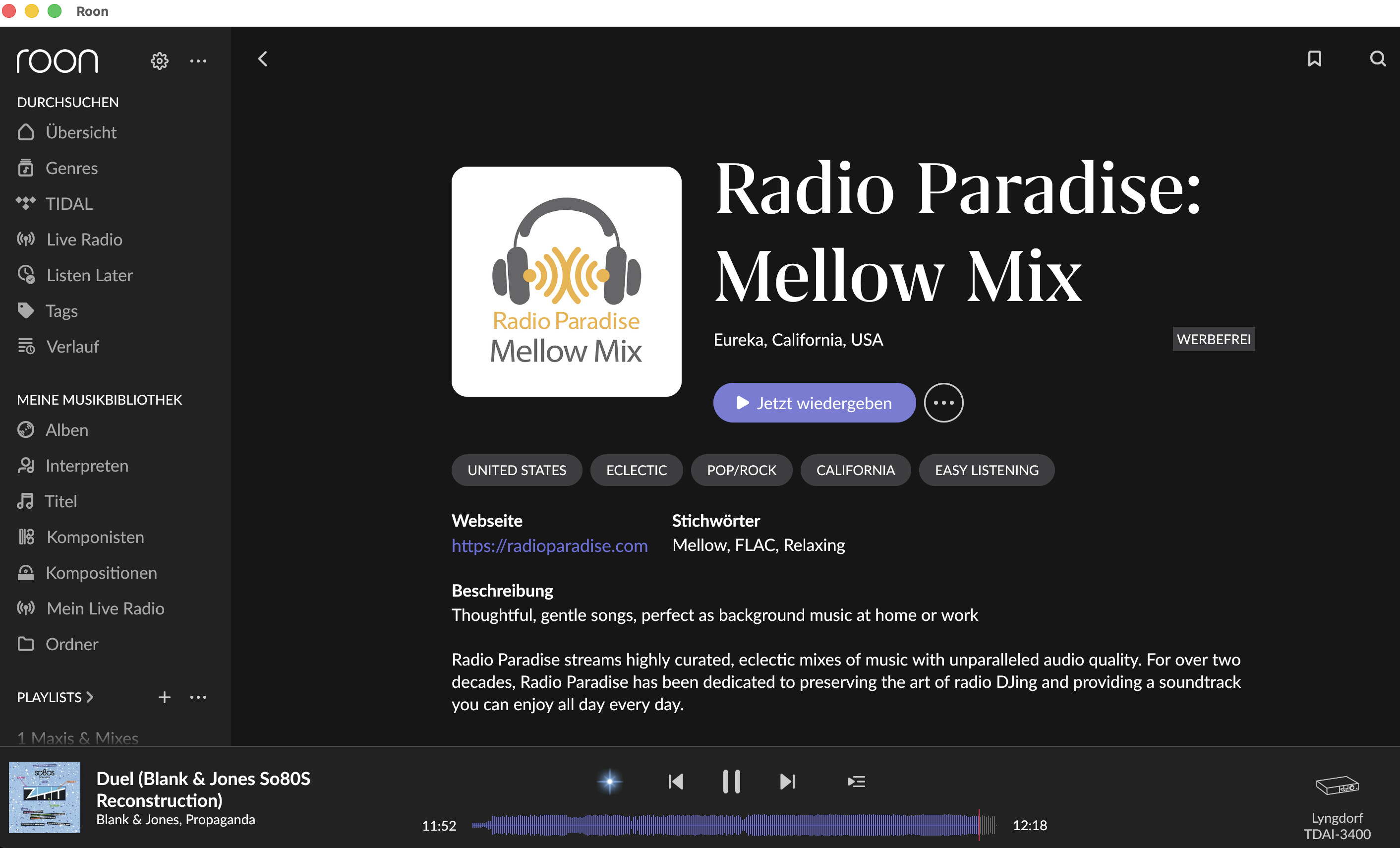 To listen to Radio Paradise on your RS151, the best way is to use the (external!) app “Radio Paradise”. In this app you choose the music genre you want to hear and then send it with airplay to the RS151.