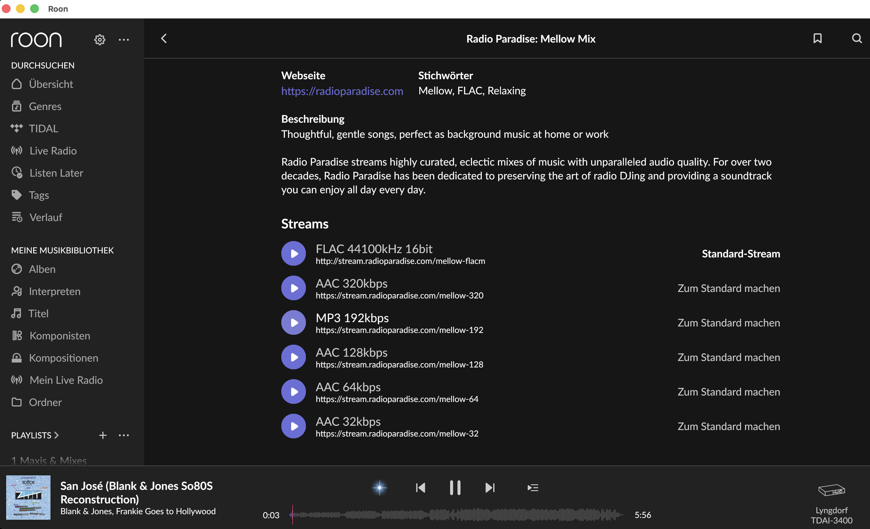 In Roon, it looks like this