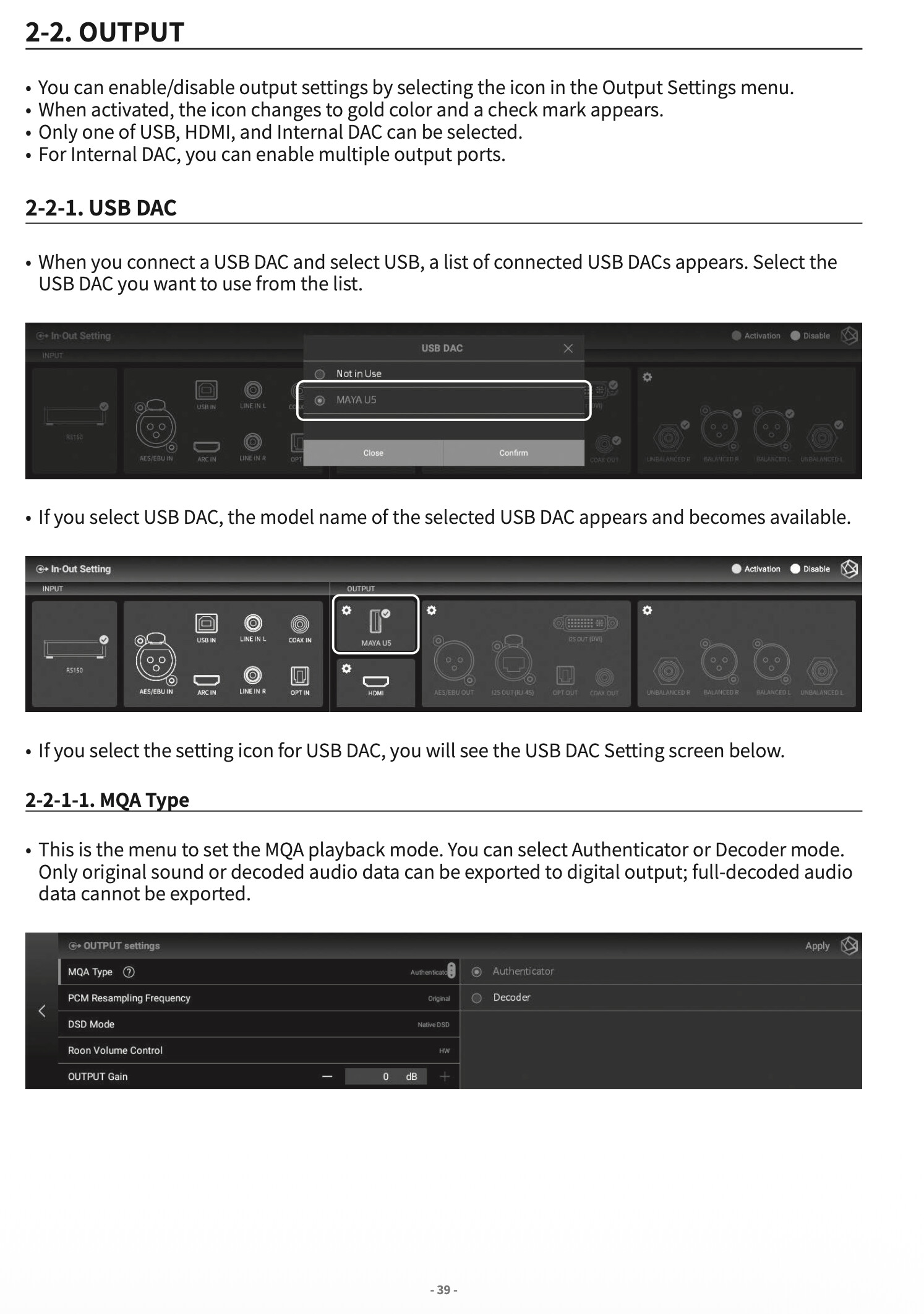See images of pages 39 and 55 from the manual.