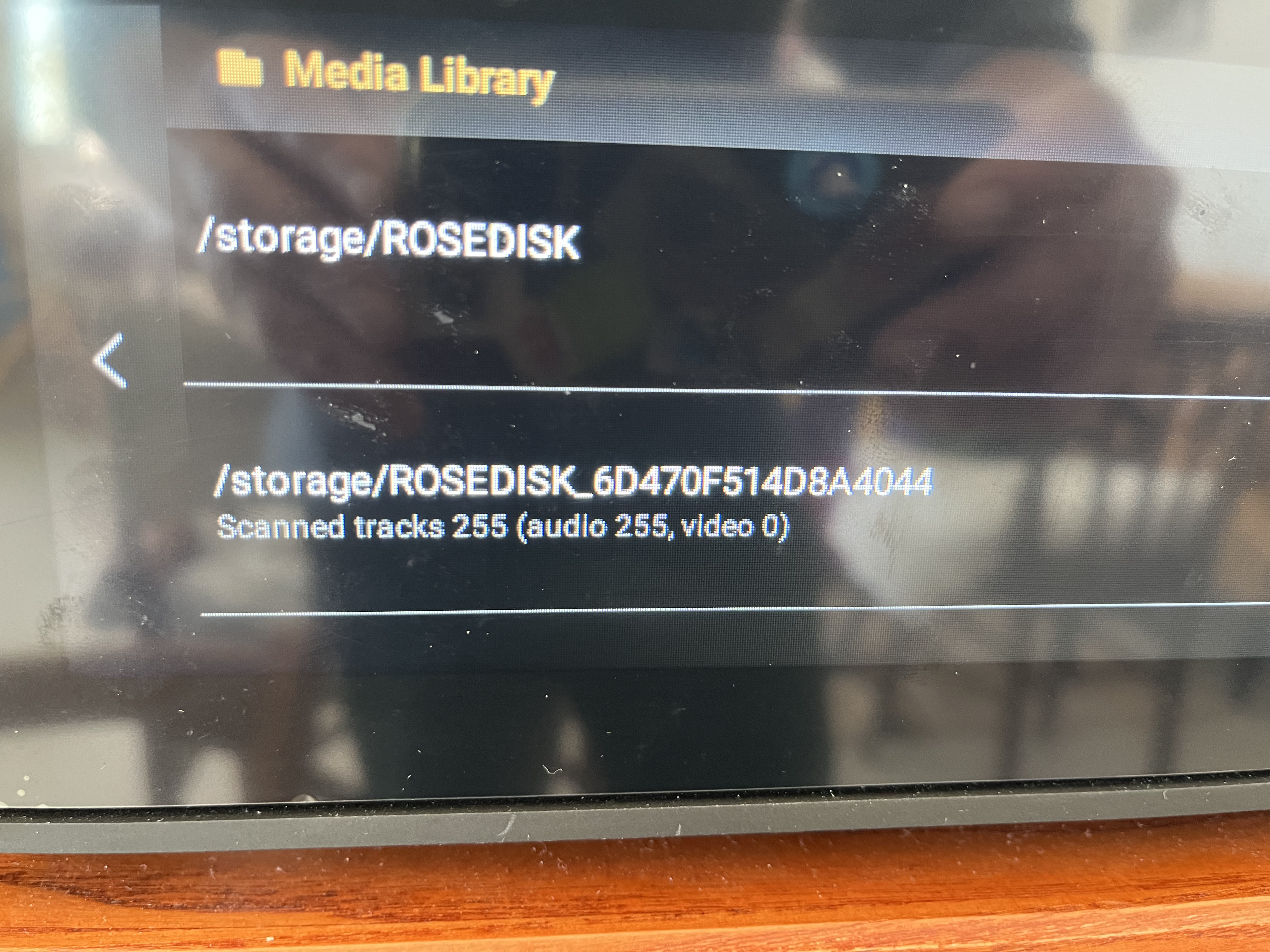 The problem I have is that there’s a new ROSEDISK directory visible with a strange name ROSEDISK_6D470F514D8A4044 where I have been able to upload the revised music files and that this directory (as well as the standard ‘ROSEDISK’) sometimes do not show up - yesterday it was all visible, today is not - it’s temperamental and there are days/times when I can access it and continue to upload files and there are times - like today - when not only I cannot access the files, but the directory doesn’t scan either - please see video below.