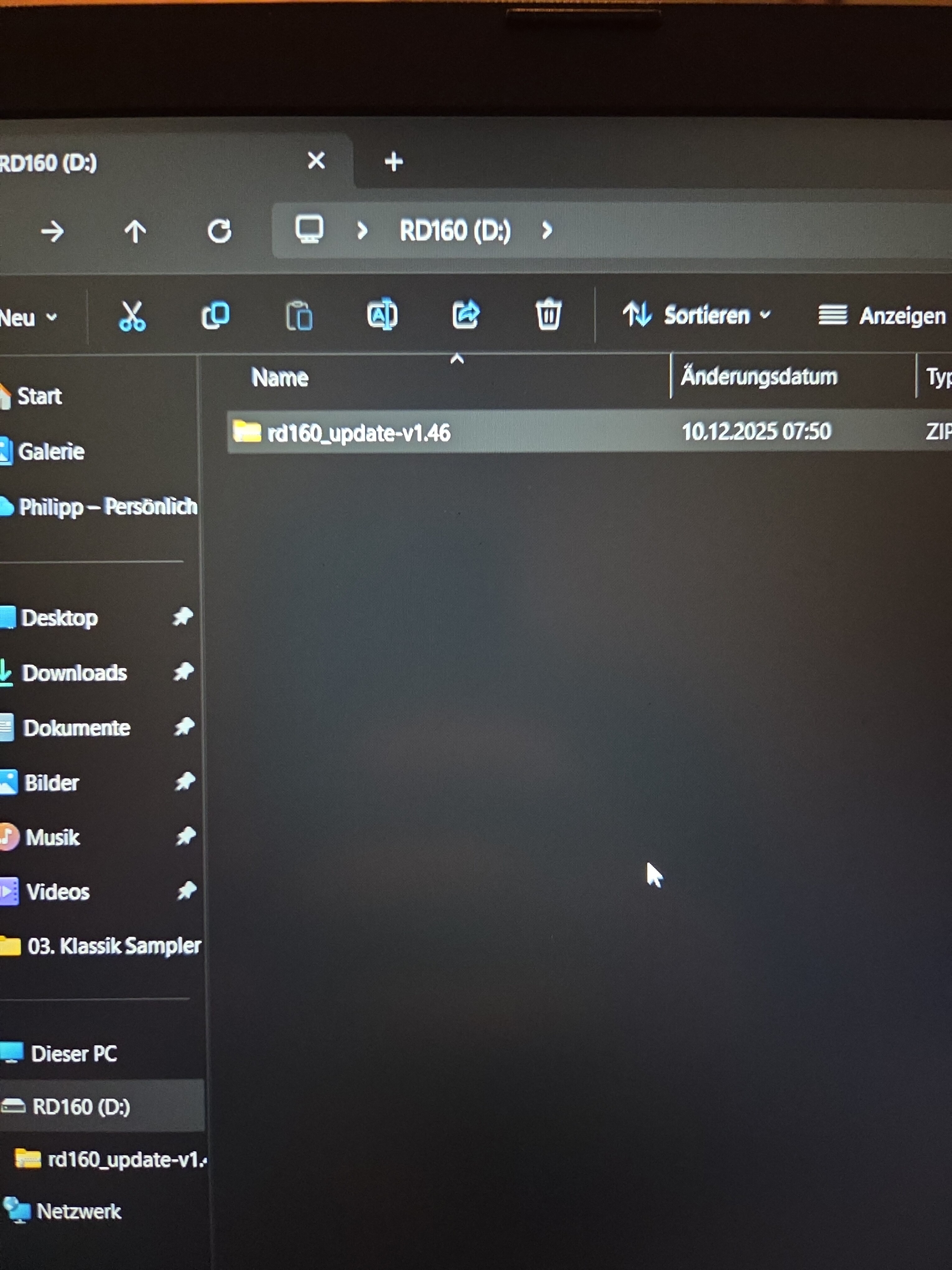rd160_update-v1.46.zip in the root directory of the USB stick.