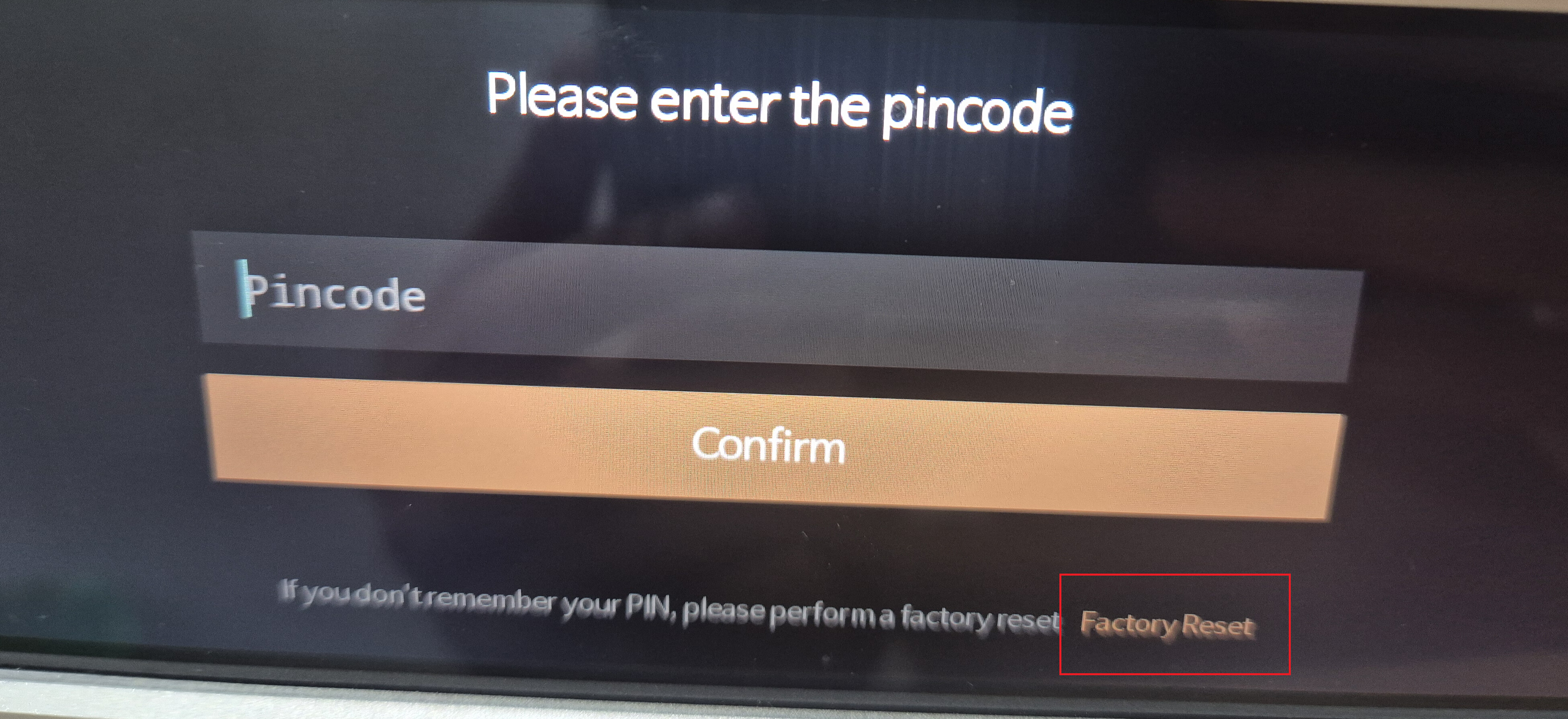 If you’ve forgotten your PIN code and need to perform a factory reset, you can do so by clicking the area I highlighted in red in the photo below.