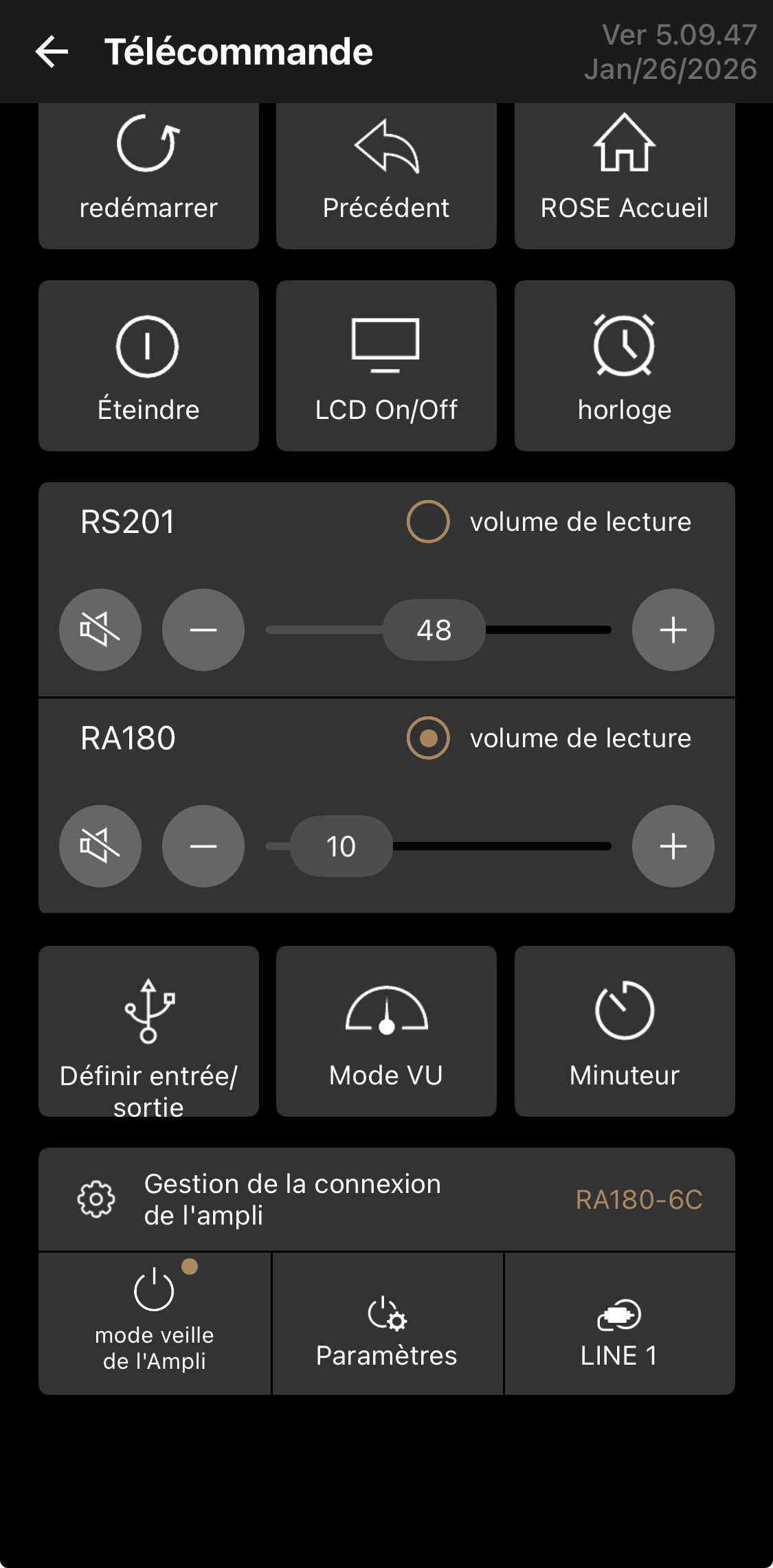 I own a rose RS201 and a RA180 and I just noticed that in the rose connect app it is possible to connect the RA180 alongside the RS 201 and control the volume and some basic function.