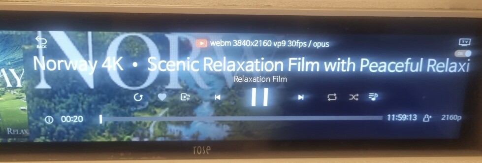 Also the same videos on tidal, the tidal videos do not reduce the bit rate. You tube does reduce the bit rate if they can, you never know what you will get, as you tube, and rose tube by extension, randomly reduce the bit rate, and often ( if you re using apple tv box) you have to go and change this on apple tv box, which you cannot do on the HIFI rose hardware. But my observation is that the tidal videos are not reducing the bit rate of the delivery or adjusting the format it’s all 2160p. Rose tube has to take what you tube delivers and it’s not always 2160p ( it’s always available in 2160p). But you tube cuts it back at times automatically based on their algorithm, and this can be seen, slightly reduced resolution and color fidelity, when watching the videos on you tube/rose tube. So use tidal video folks if you want to insure the best quality.