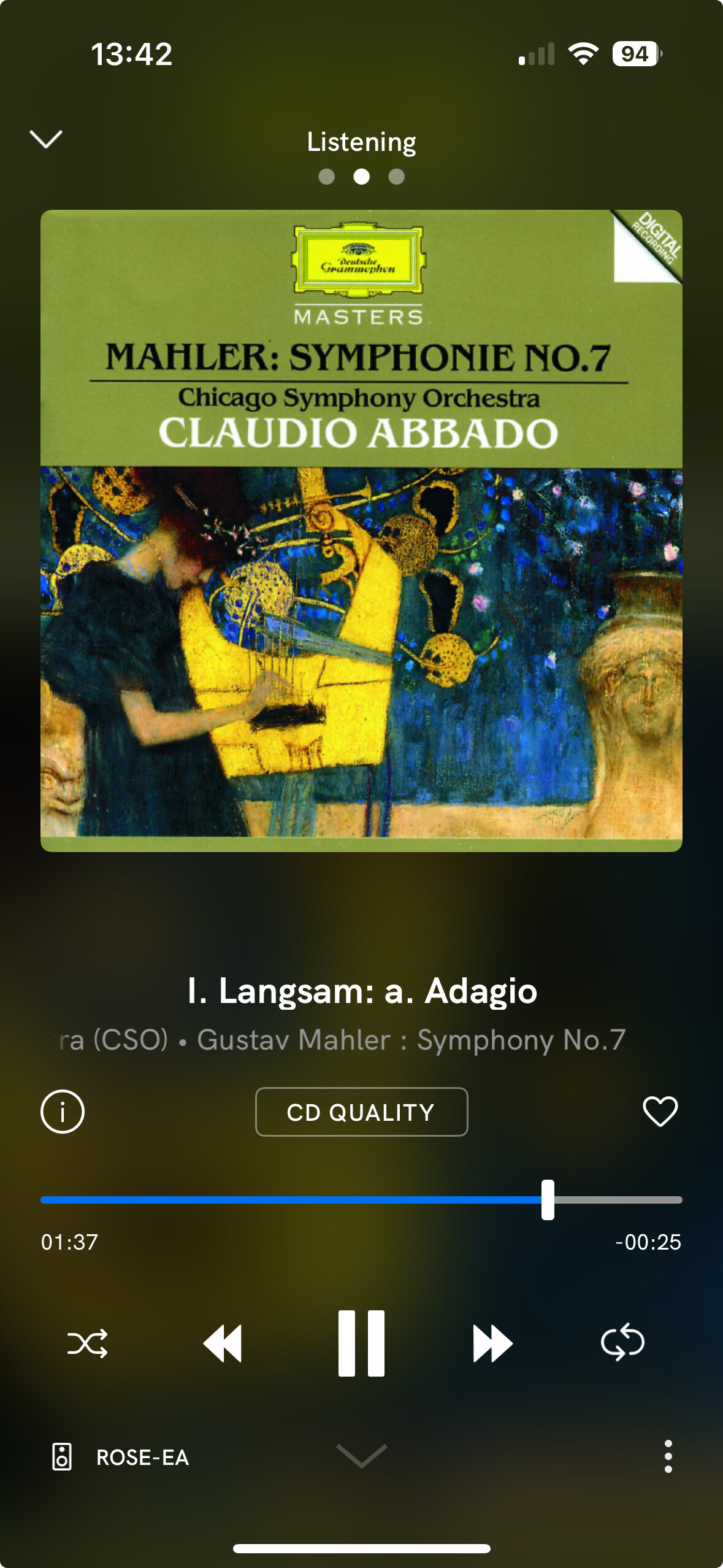 A good test is Mahler Symphony 7, Abbado, Chicago Symphony Orchestra. 1. Langsam: a.Adagio. Listen to the changeover point at 2’02” went it moves on to 1. Langsam b. Nicht Schleppen. This is when the glitch occurs. See attached screenshot of the track.