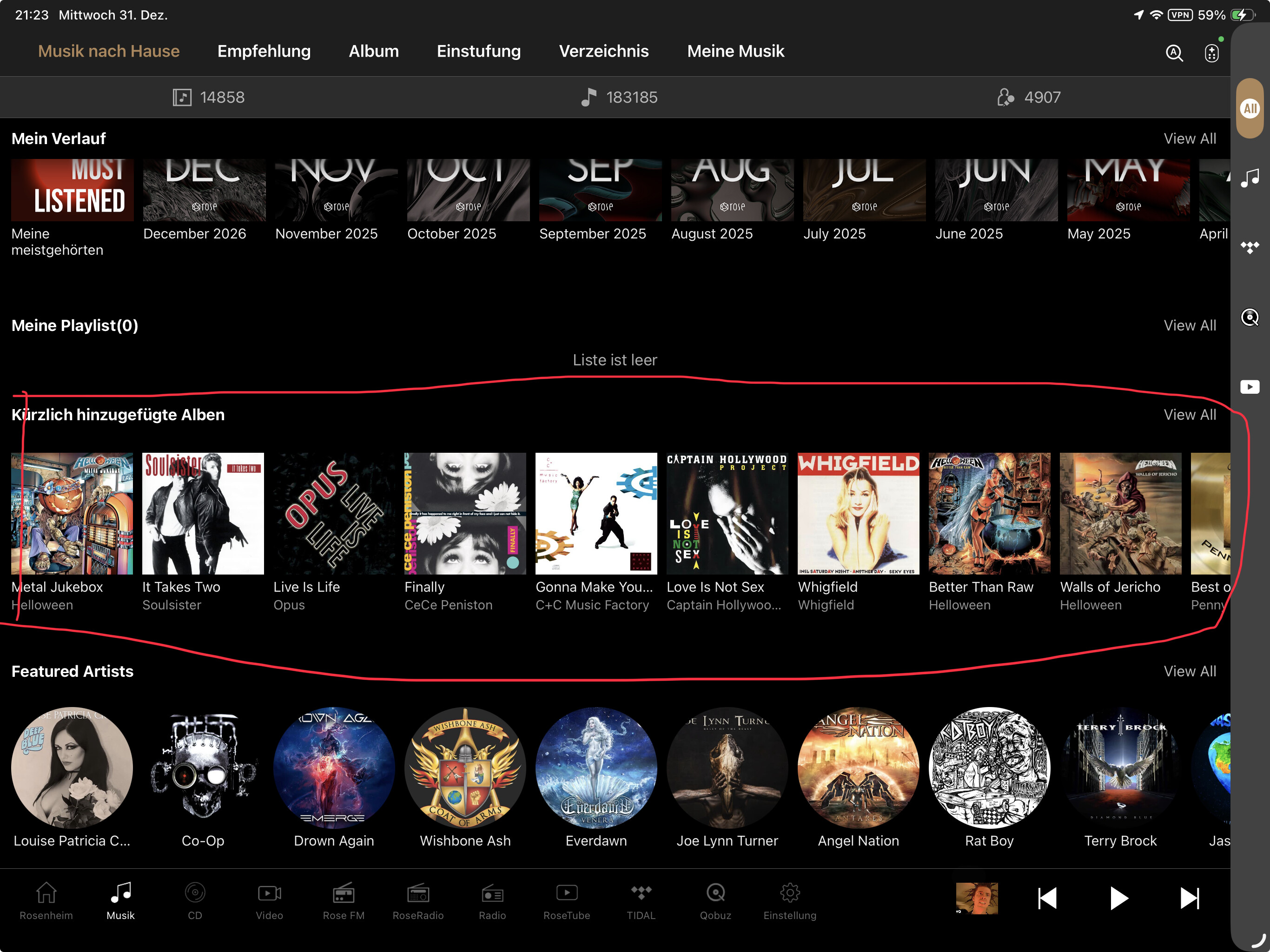 I wanted to thank you for the fact that newly imported albums can now be displayed (to be honest, I always looked in the filters; I don’t know since when that became visible via the “Music at Home” menu). That’s what I was missing. So everything’s fine regarding that issue, thanks!