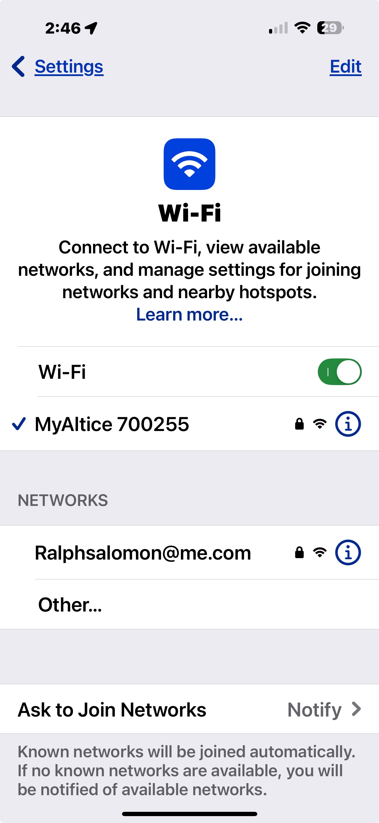 Please forgive my ignorance with this stuff. On the label of the router the SSID is as shown in the attached photo of the RS250. MyAltice… You will see that my phone is connected to the same SSID in the second photo. Why then can’t I connect with the app?