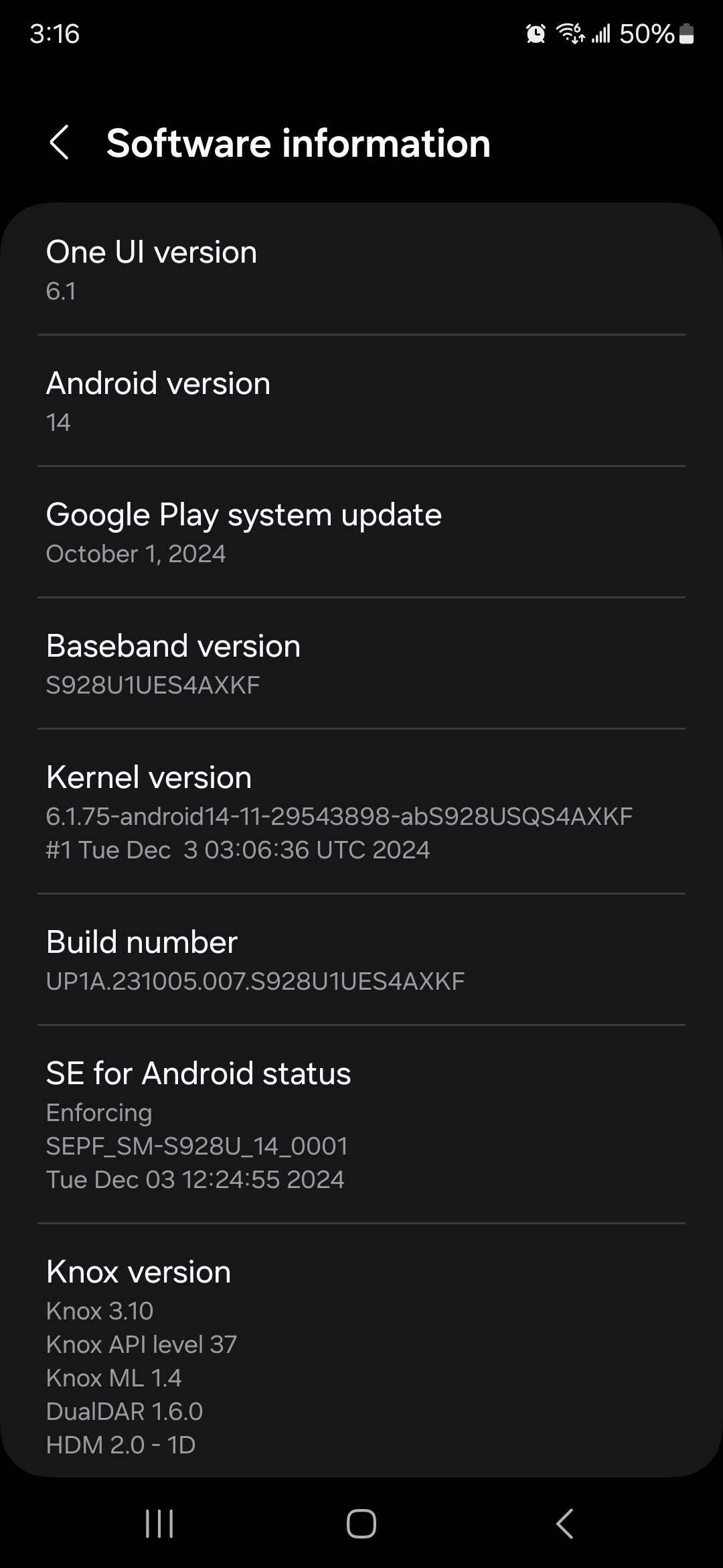 Please follow the method below on your Samsung Galaxy S24 Ultra, go to Software information, capture the screen, and send it to me.