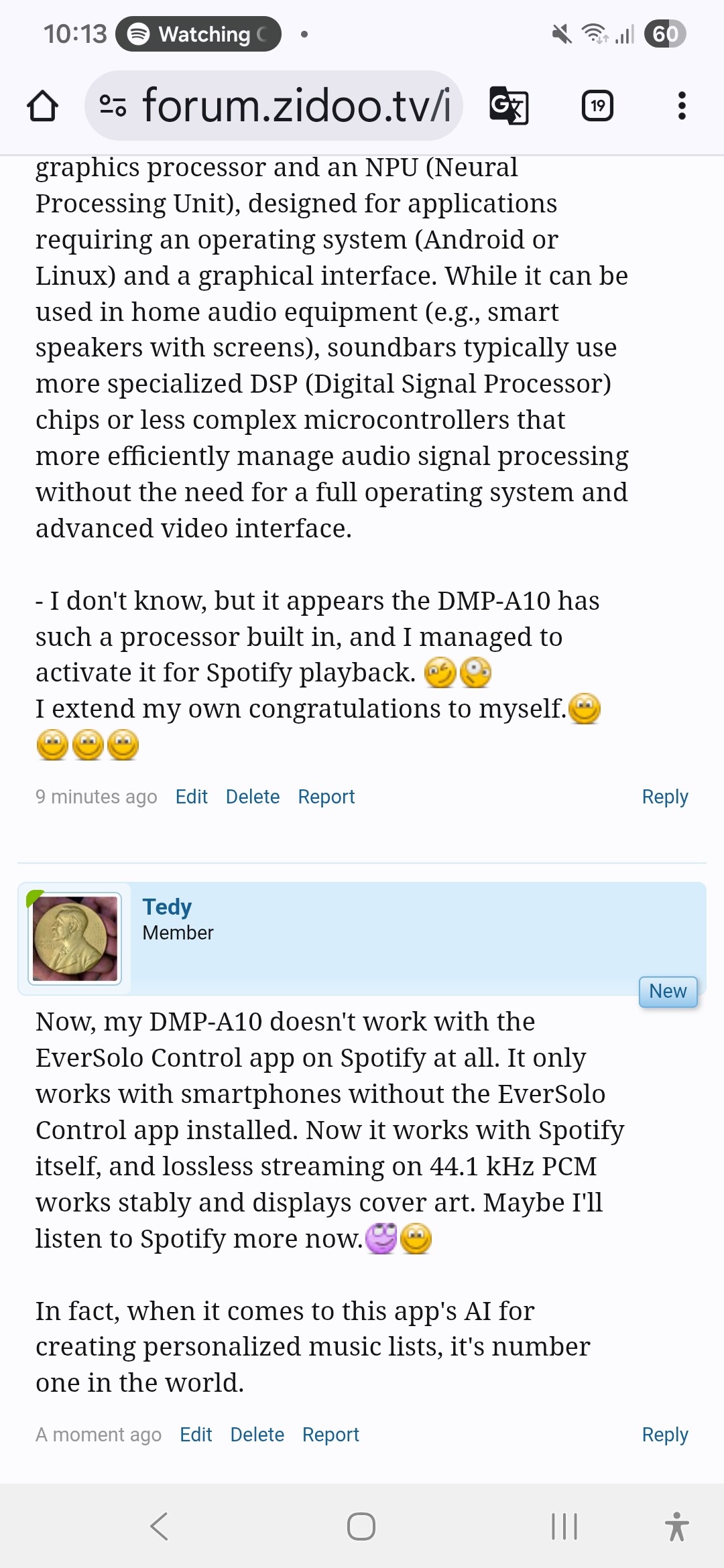 Now, my DMP-A10 doesn’t work with the EverSolo Control app on Spotify at all. It only works with smartphones without the EverSolo Control app installed. Now it works with Spotify itself, and lossless streaming on 44.1 kHz PCM works stably and displays cover art. Maybe I’ll listen to Spotify more now.