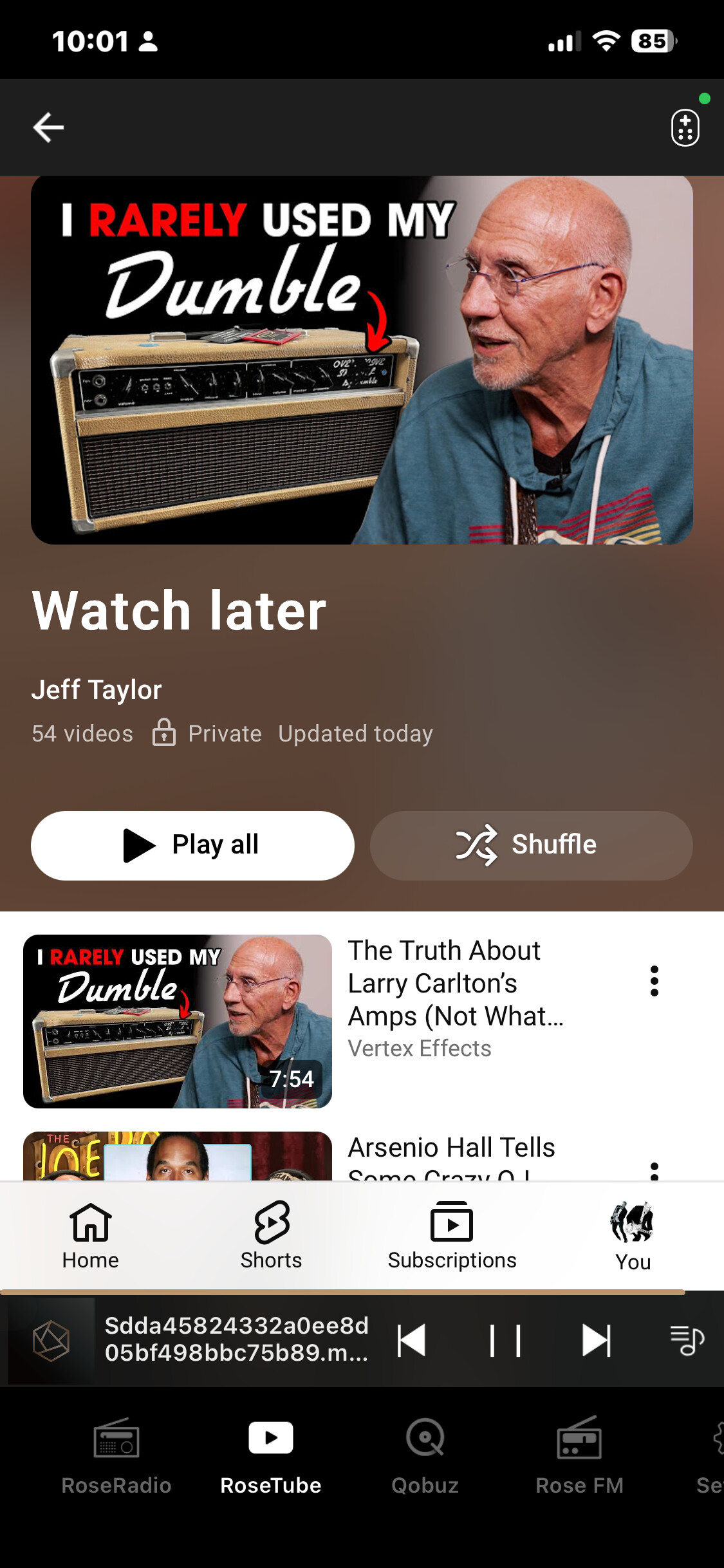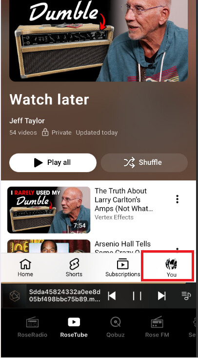 With Rose Premium Connect, in the RoseTube app, I can login into my YouTube channel (although the passkey function never worked; password was sufficient) and retrieve my various Playlists (I am most keen on the “Watch Later” playlist).